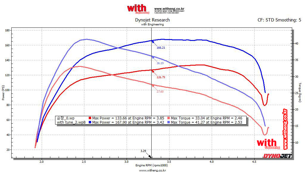 튜닝 포함: 167.90hp, 41.27kg.m 토크